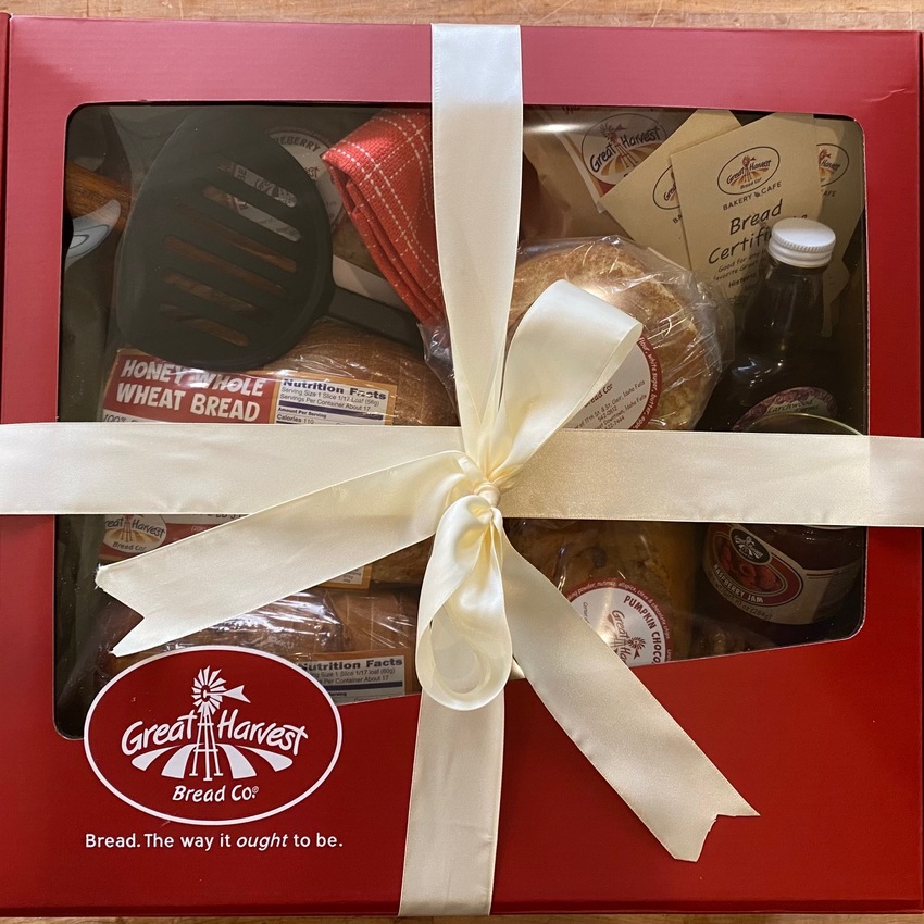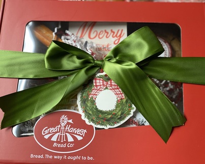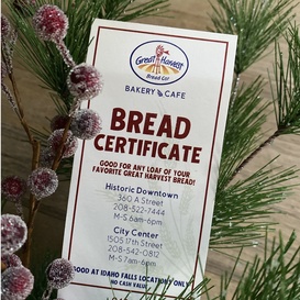 This is the perfect gift for friends and co-workres in the office or extended family! Redeemable for ANY Great Harvest fresh loaf of bread at our Downtown Location. Yes, even our famous Pumpkin Chocolate Chip or Cinnamon Burst!!